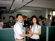 渠道一部卿海燕接受總經理助理余沐生的頒獎