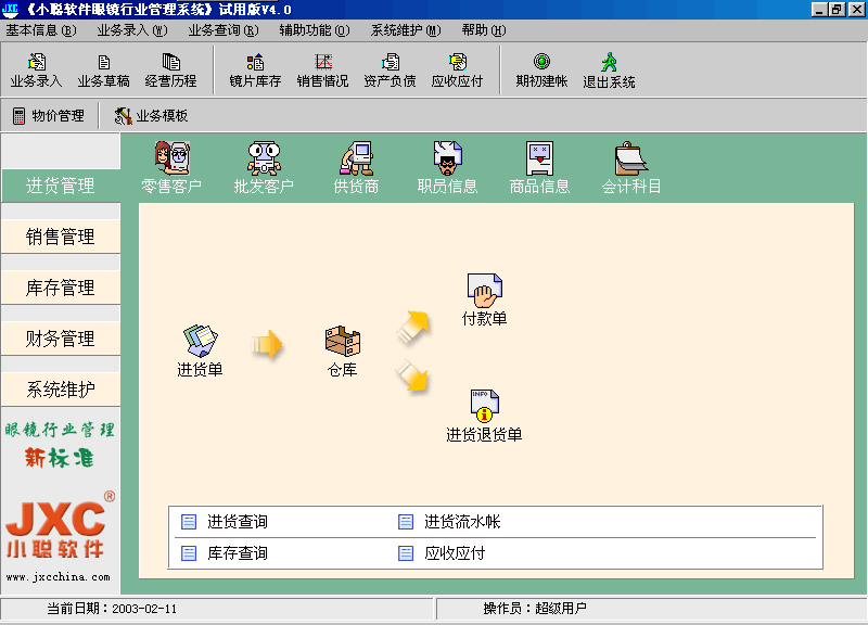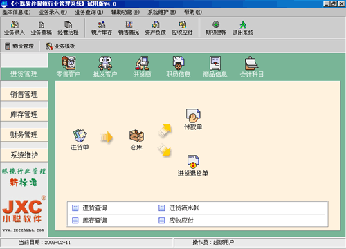 專業面向眼鏡連鎖銷售(shou)行業,符合眼鏡行業管理新(xin)標準,進銷存財務一體(ti)化功能,附帶(dai)工資及考勤管理。