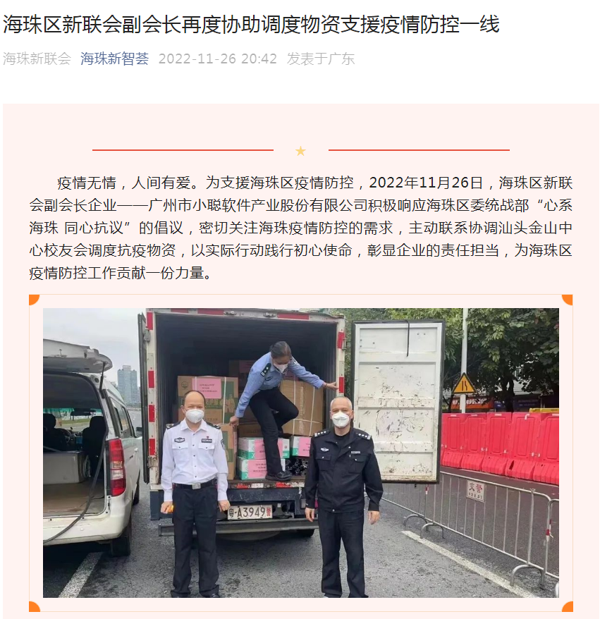 海珠區新聯會副會長再度協助調度物資支援疫情防控一線