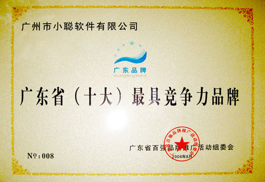 2006年8月28日,廣州市小聰軟件有限公司被廣東省百強品牌推廣活動組委會評為“廣東省(十大)最具競爭力品牌”