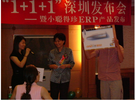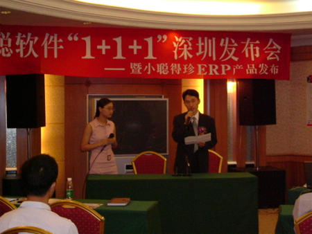 小聰軟件3W產品涉及18個行業,產品達30多種,品牌的信譽度強,是目前中國行業管理軟件開發力度最大、產品最齊全的軟件公司。由于豐富的產品以及小聰公司13年的品牌信譽等各方面的吸引,一直倍受全國業界的關注,天河、深圳、茂名、武漢專賣店的誕生,讓小聰軟件事業發展更上一個臺階。“小聰軟件1+1+1深圳發布會”的舉辦,不僅使小聰軟件在深圳地區更具有號召力和影響力,目的更在于幫助各專賣店快速開拓市場,更提高深圳各專賣店在當地的影響力,同時這次會議也吸引了西安、珠海地區合作伙伴的光臨,并現場成功簽約了小聰軟件西安專賣店,此次會場氣氛表現非常激烈。 邀請參加此次會議的單位領導有:廣州市科技局馬小明博士、美國國際大學林國華主任、韓國得珍公司金潤一經理、廣州市軟件行業協會、美國趨勢廣州公司、深圳天俊實業股份公司。(以上排名不分先后)