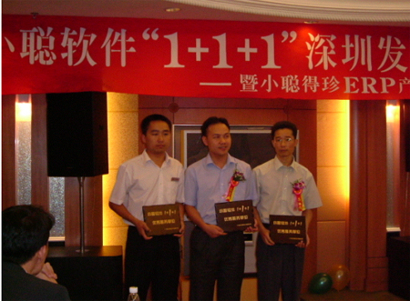 為小聰軟件深圳各專賣店頒發“小聰軟件1+1+1優秀服務單位” 獎