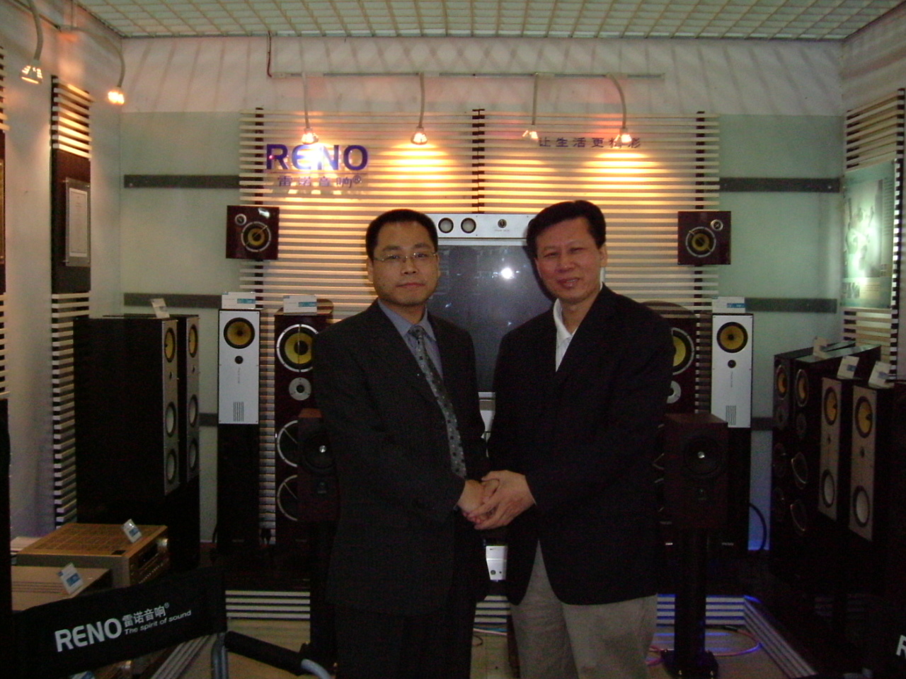 (圖右(you)是“小(xiao)聰(cong)增(zeng)城專(zhuan)賣(mai)店”陳經(jing)理和小(xiao)聰(cong)總公司(si)簽約代表裝(zhuang)修前留影(ying))