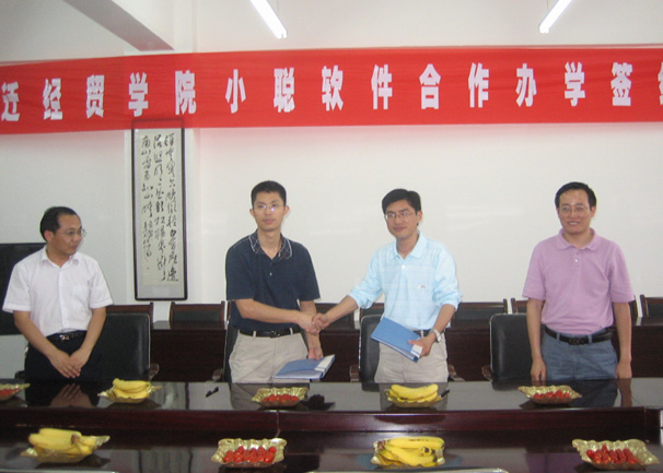 2008年7月小聰軟件和宿遷經貿學院簽定合作辦學協議