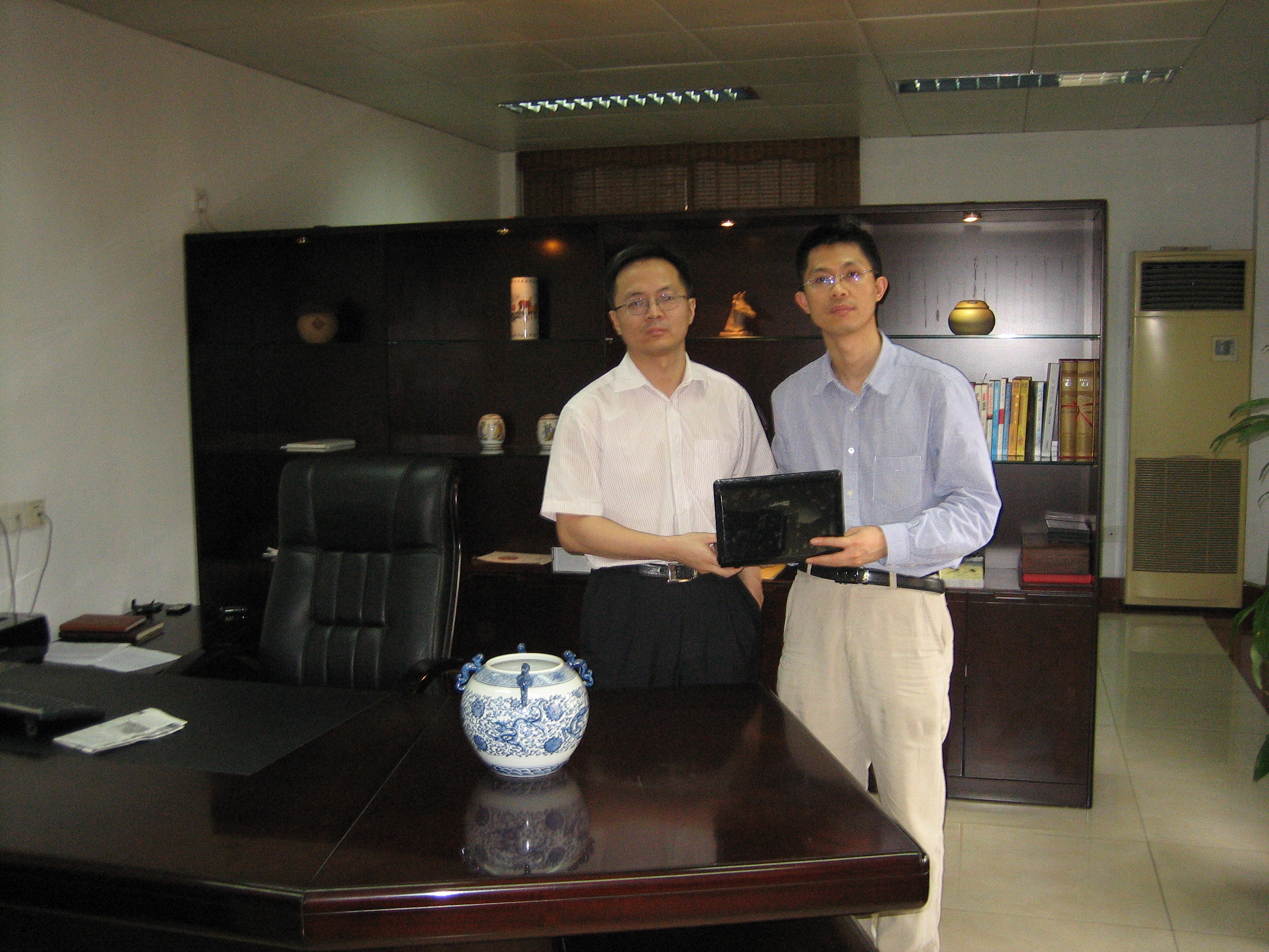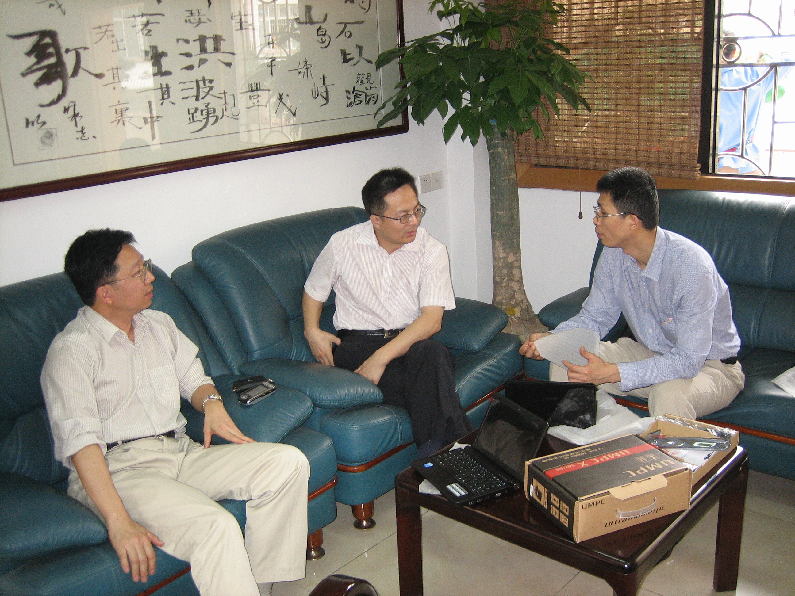 小聰軟件集團董事長和廣州海珠電信總經理劉軍民先生商談小聰網本和電信無線上網銷售捆綁業務合作首批進貨合作成功
