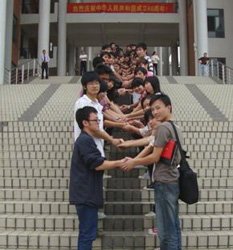 (周小聰董事長<二排左六>與全體領導、老師、工作人員和學生合影)