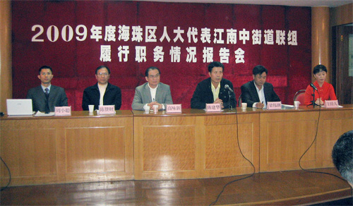 2009年12月7日下午,廣州小聰軟件集團董事長周小聰先生,出席2009年度海珠區人大代表江南中街道聯組履行職務情況報告會,會上周董事長主要從以下方面對過去三年的職務履行情況做了發言總結: 一、完善自我,加強理論學習 二、認真履職,發揮作用 1)走出海珠、宣揚海珠,搭建友誼橋梁; 2)提出獨創的人才培養方式; 3)立足海珠,服務海珠; 4)建立軟件創意產業園,促進海珠經濟發展; 5)積極參加人大組織的各項活動。 并將繼續更好地履行人大代表的職責和義務,繼續為海珠區做實事,做有意義的事。