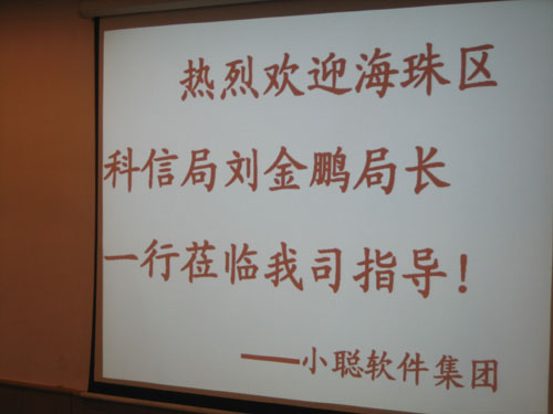 7月20日,海珠區政協副主席、科信局局長劉金鵬在副局長孫伯榮的陪同下一行來到小聰軟件總部視察工作,小聰軟件集團董事長周小聰熱情接待,并向劉局長一行詳細介紹了小聰軟件及小聰科技創意園的發展情況。 小聰軟件集團在過去近20年的發展中,本著“謙虛專業、可持續快樂發展”的經營理念,自主研發出18個行業30多款3W一體化行業管理軟件。現又聯合專業的安防機構最新研究推出“JXC門務通”訪客登記系統,廣泛應用于政府、企業、學校人員往來登記實時管理。 劉金鵬局長一行仔細聽取了關于“JXC門務通”系列產品的介紹,并饒有興趣的實地觀看了使用情況的演示,在看完產品演示后,劉局長仔細的詢問了產品的成本、價格、技術等問題,劉局長對“JXC門務通”做了充分肯定,同時強調要降低成本,擴大市場,實現產品的產業化發展。