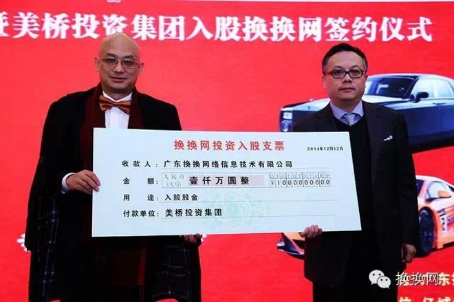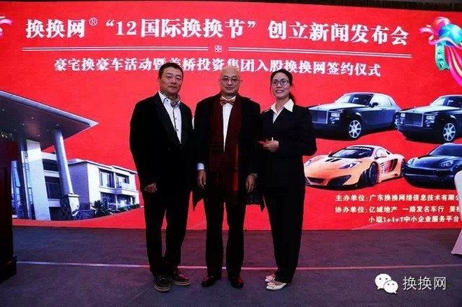 12月12日,由廣東換(huan)換(huan)網絡信息技術有(you)限公(gong)司舉辦的“12國(guo)際換(huan)換(huan)節”創(chuang)立新(xin)聞(wen)發(fa)布(bu)(bu)會在億(yi)城(cheng)泉(quan)說酒店順利召開,美橋投(tou)資(zi)集(ji)團(tuan)高(gao)管(guan)、換(huan)換(huan)網高(gao)管(guan)、一路發(fa)名車行高(gao)管(guan)、億(yi)城(cheng)地產(chan)高(gao)管(guan)等(deng)出(chu)席了此次新(xin)聞(wen)發(fa)布(bu)(bu)會,投(tou)資(zi)方就“資(zi)源置換(huan),互利共贏”項目(mu)的諸多(duo)合作事宜達(da)成一致。