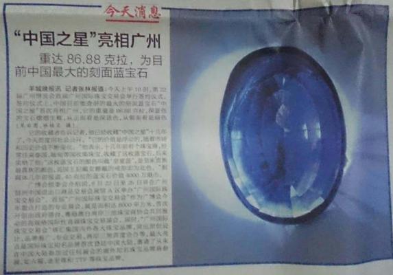 情讓中國(guo)最大(da)刻(ke)面藍寶石(shi)“中國(guo)之星”