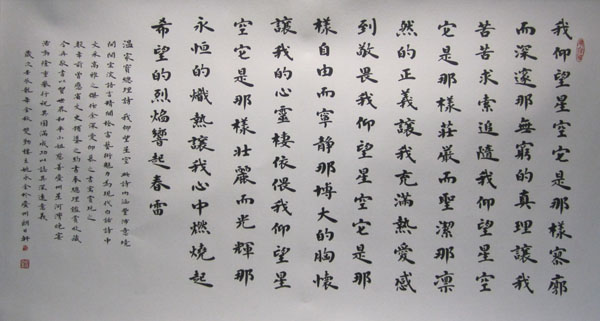 端楷書寫溫總理的詩《我仰望星空》 六尺巨幅