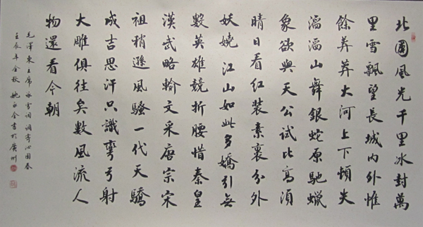 行書揮寫的《毛主席詠雪詞》六尺巨幅