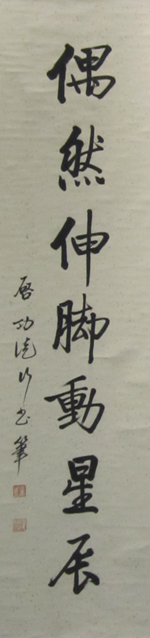 行書堅持研習各流派的繪畫、書法、先后師從啟功(已故) 白雪石、蘇士澍,了解中華五千年古老藝術的同時,善于涉及前人的經驗和藝術精華,師古不泥、大膽創新形成自己的 獨特風格,擅長觀察,思考、提煉、升華。著為啟功傳承人,行書頗受行內書畫大師以及黨和國家部分領導的喜愛和青睞 ,極具較高的藝術品位。并在近年入選中華名師大講堂特邀教授。