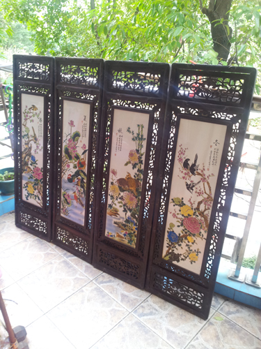 古屋收藏《四季屏風》:框架木質堅硬,石板字畫清晰,出于佛山陶藝之精品。
