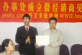 小聰軟件周小聰先生向重慶辦事處主任何紅軍先生頒發授權書