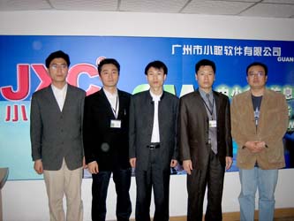 大同起飛公(gong)司朱總(中間)和張總(右(you)一)與小聰軟件領導合影