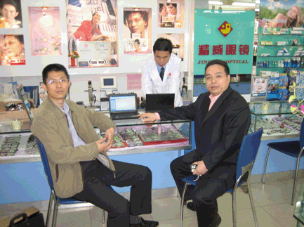 著名品牌精威眼鏡配鏡師正在使用小聰安全筆記本電腦左:廣州市海珠區人(ren)大代表、廣州精威眼(yan)鏡(jing)董(dong)事長徐廣紹