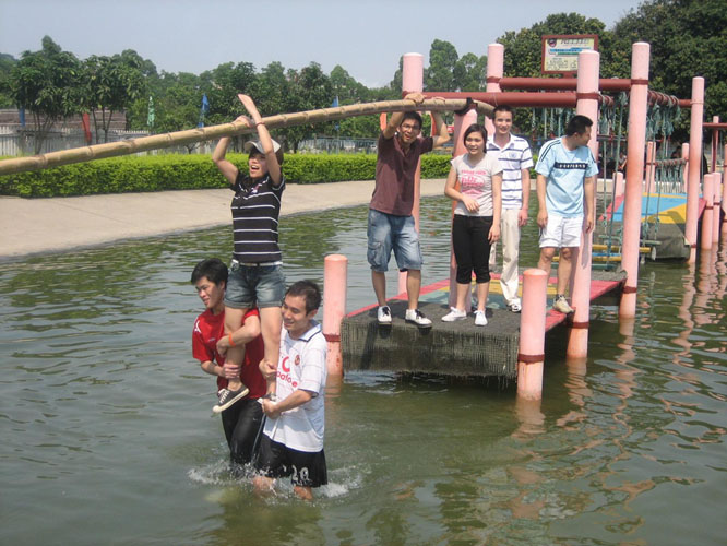 拓展訓練時而考驗我們的平衡性和協作性,時而考驗我們的耐性和膽量;時而考驗我們在面對困難和危機時的勇氣和信心!這次活動使整個團隊的默契和協作能力得到很大的提高,同時增強了彼此間的信任和聯系。尤其是下午的水上項目,一些隊員很快地落水了,但他們甘于奉獻,用自己的身體護送著團隊中的每一個人到達終點,這無不表現“犧牲”自己,成就團隊的忘我和付出的精神!