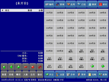 新的(de)《小聰餐(can)飲娛樂(le)管(guan)(guan)理系統(tong)(tong)》除了(le)基本(ben)的(de)點菜收銀、酒菜設置、房臺設置、銷售(shou)分析(xi)(xi)(xi)(xi)、酒菜分析(xi)(xi)(xi)(xi)、房臺分析(xi)(xi)(xi)(xi)、員工管(guan)(guan)理等功(gong)能(neng)外,還增加了(le)PDA點菜、會員管(guan)(guan)理、酒席管(guan)(guan)理、接待預訂、庫(ku)存(cun)管(guan)(guan)理、庫(ku)存(cun)分析(xi)(xi)(xi)(xi)、業績分析(xi)(xi)(xi)(xi)、財務查詢(xun)、掛帳管(guan)(guan)理、工序流程等大量功(gong)能(neng),而且操作界(jie)面簡單(dan),清(qing)晰,能(neng)夠自(zi)定義設置部分功(gong)能(neng),從而使系統(tong)(tong)更加人性化和貼近餐(can)飲企業的(de)實際情況(kuang),能(neng)夠很好地滿足大中小型餐(can)飲娛樂(le)企業營運管(guan)(guan)理的(de)需要(yao),是性能(neng)價(jia)格比最(zui)優(you)的(de)選擇。