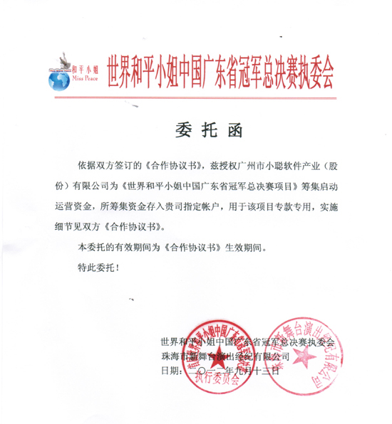 首屆世界和平小姐中國廣東省冠軍總決賽榮譽主席 周小聰先生榮譽主席 曹傳愿先生榮譽主席 周向東先生首席策劃師 葉劍飛先生相關下載:首屆世界和平小姐中國區冠軍總決賽報名表首屆世界和平小姐中國區冠軍總決賽報名條件選手報名登記表相關鏈接:世界和平小姐冠軍總決賽//www.mwp999.com熱烈祝賀中國慈善家金木堂投資集團董事長周向東先生認購5萬股,并出資5萬元支持世界和平小姐大賽廣州賽區慈善晚會晚宴!//www.mwp999.com/News_view.asp?id=100恭祝全球華人商會做為首屆世界和平小姐中國廣東省廣州賽區指導單位//www.mwp999.com/News_view.asp?id=99書畫大師王行書先生在簽約儀式中的講話//www.mwp999.com/News_view.asp?id=98為首屆世界和平小姐中國廣東省冠軍總決賽首席策劃師葉劍飛先生頒發聘書//www.mwp999.com/News_view.asp?id=97為首屆世界和平小姐中國廣東省冠軍總決賽榮譽主席曹傳愿先生頒發聘書//www.mwp999.com/News_view.asp?id=96為首屆世界和平小姐中國廣東省冠軍總決賽榮譽主席周小聰先生頒發聘書//www.mwp999.com/News_view.asp?id=95