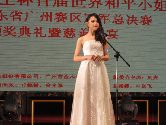 2012年11月18日,在廣州番禺星河灣酒店國際會議中心,由小聰軟件產業集團[股份代碼:890033]和金木堂投資集團跨境投資服務中心聯合舉辦的“長樂粵酒王杯”首屆世界和平小姐中國廣東省廣州賽區冠軍總決賽頒獎典禮暨慈善晚宴圓滿召開。