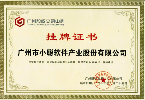 2012年 集團認定:小聰軟件在廣州股權交易中心正式掛牌,上市股權代碼[880013] ;