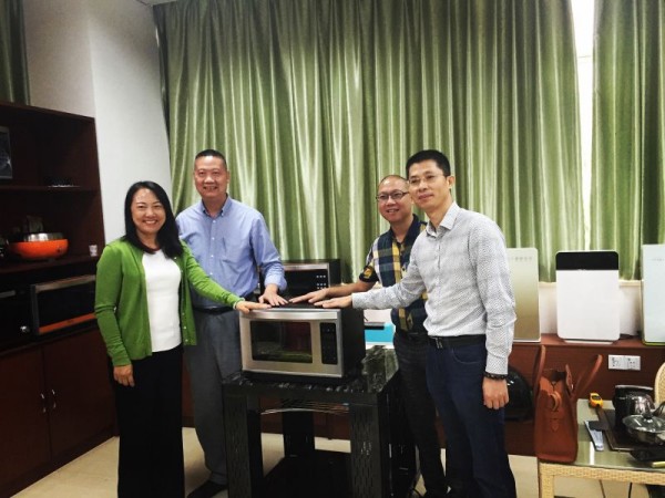 小聰1+1+1國家平臺主席周小聰先生一行11月11日組織平臺投資人參觀廣東澳斯威爾電器科技有限公司。考察現代高科技新型廚具革命性產品,公司營銷總監陳頌東先生、總經理陳曙明先生向大家熱情介紹了熱銷環保產品蒸烤爐,得到了大家的一致贊許。